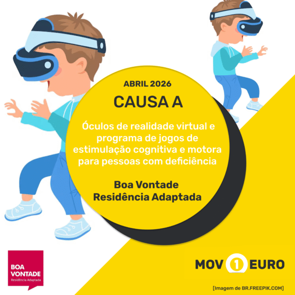 Somos a Boa Vontade Residência Adaptada, fundada em 1964, com a missão de apoiar adultos com deficiência motora. O apoio solicitado permitirá adquirir óculos de realidade virtual e um programa de jogos de estimulação cognitiva e motora, de modo a abrir novas portas ao desenvolvimento, à autonomia e à felicidade dos nossos utentes, transformando a estimulação terapêutica em momentos de alegria, participação e superação. Beneficia 10 pessoas diretamente e 32 pessoas indiretamente.