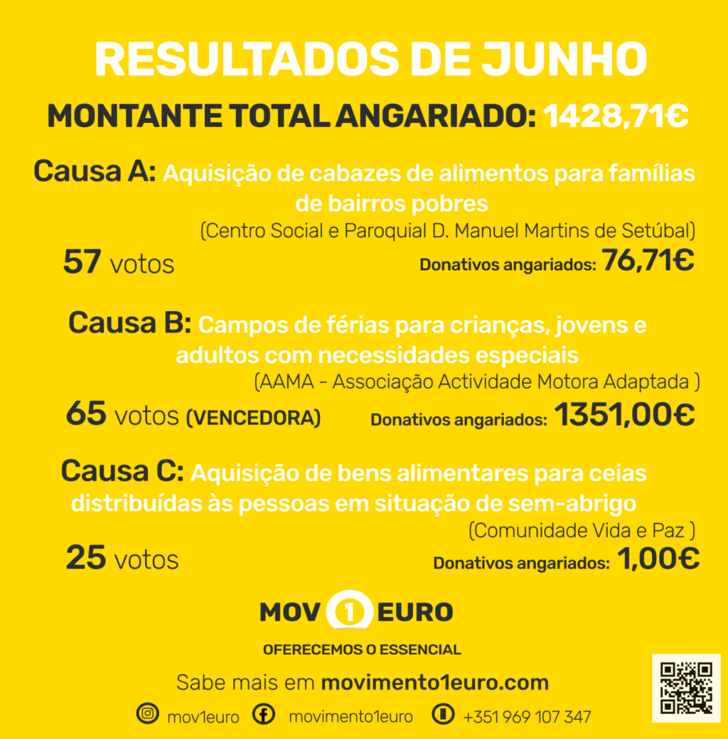 Em junho, recebemos donativos extra e, após o fecho da campanha, angariámos este montante: